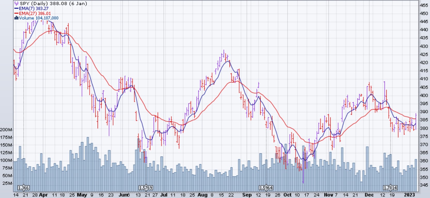 Le S&P 500 a baissé de plus de 19% en 2022 lorsque la montée de l'inflation a incité la Réserve fédérale à relever sept fois les taux d'intêrets. Craignant une récession, les investisseurs espéraient que les hausses de taux ralentiraient et finiraient par entraîner une baisse des taux, mais le FOMC a relevé ses perspectives de taux médian lors de sa dernière réunion de 2022. Cependant le marché est toujours au même niveau depuis le mois de mai 2022. Il est monté de 1.4% la première semaine de l'année 2023.