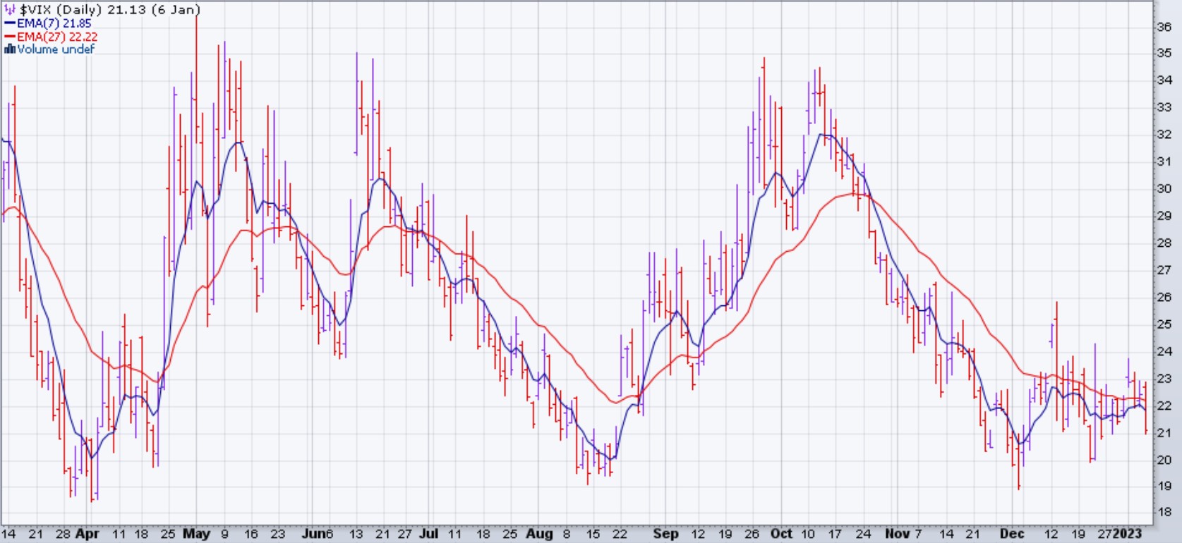 Le VIX a conclu sa semaine à 21%: un niveau qu'il a fait plusieurs fois durant l'année 2022. Depuis le mois de décembre, il fait une configuration de triangle isocèle.