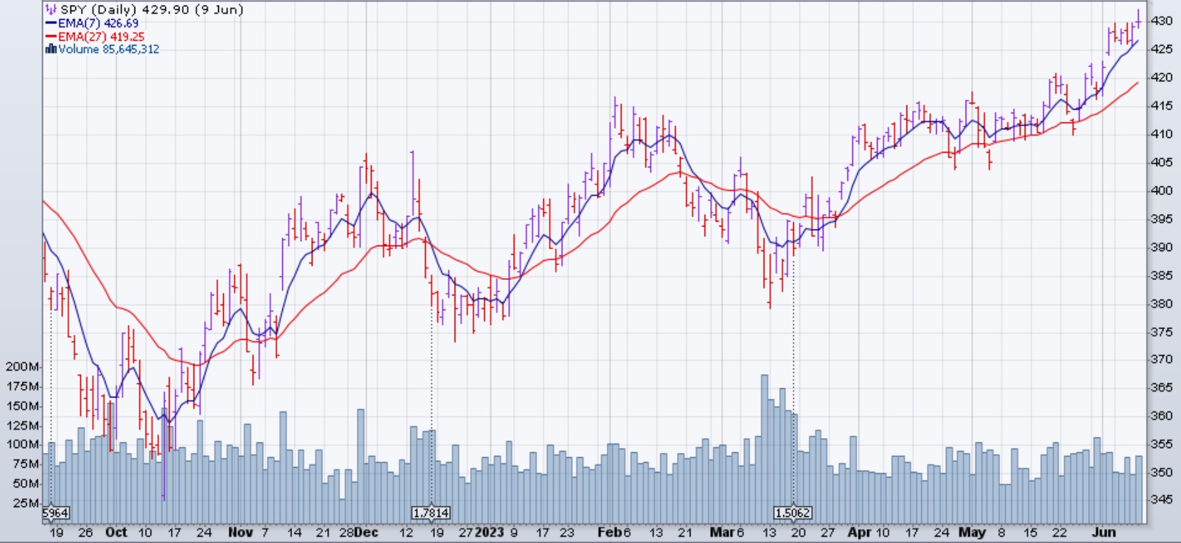 Le marché (SPX et dérivés) est monté de 0.4% la semaine du 5 juin 2023. La Banque mondiale et l'Organisation de coopération et de développement économiques ont relevé cette semaine leurs prévisions de croissance du produit intérieur brut mondial et américain pour 2023. L'OCDE a laissé inchangées ses perspectives de croissance du PIB mondial pour 2024, tandis que la Banque mondiale a revu à la baisse ses projections. Les données économiques américaines ont montré que le déficit commercial international s'est creusé en avril pour atteindre son plus haut niveau en six mois, tandis que les demandes hebdomadaires d'allocations de chômage ont bondi à leur plus haut niveau depuis octobre 2021, indiquant un marché du travail potentiellement en ralentissement. Les données de l'Institute for Supply Management ont montré une décélération de la croissance du secteur des services en mai. Le Federal Open Market Committee devrait annoncer mercredi sa décision de politique monétaire, les marchés prévoyant principalement que les taux d'intérêt resteront stables, selon le CME FedWatch Tool. Dans le but de lutter contre l'inflation, le comité a relevé les taux d'intérêt à leur plus haut niveau depuis 2007, contre presque zéro au début de l'année dernière. La Banque du Canada a annoncé une hausse surprise des taux d'intérêt au cours de la semaine.