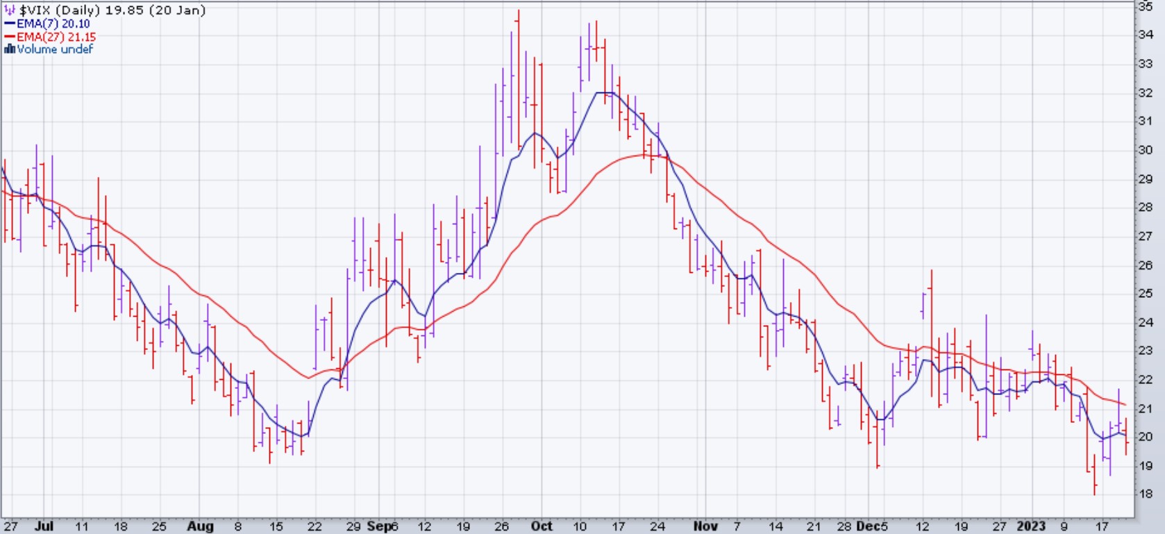 Le VIX a conclu la semaine à environ 20% après avoir descendu jusqu'à 18% avant de remonté. Si le VIX est capable de descendre plus bas que 18%, la configuration de ''M'' est complétée: signe positif pour le marché.