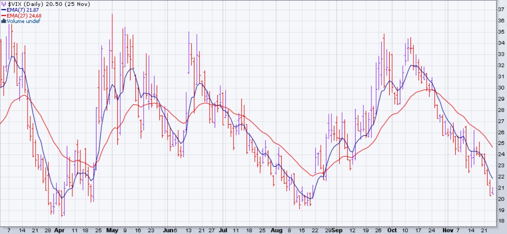 Le marché (SPX et dérivés) est monté de 1.5% la semaine du 21 novembre 2022. Cela s'est produit au cours d'une semaine qui a été raccourcie pour les vacances de l'Action de Grâce Américaine. Le marché a été fermé jeudi toute la journée et vendredi il a fermé à 13h00. La hausse de cette semaine prolonge l'avance de novembre du S&P 500 de 4% pour novembre avec seulement trois sessions restantes dans le mois.