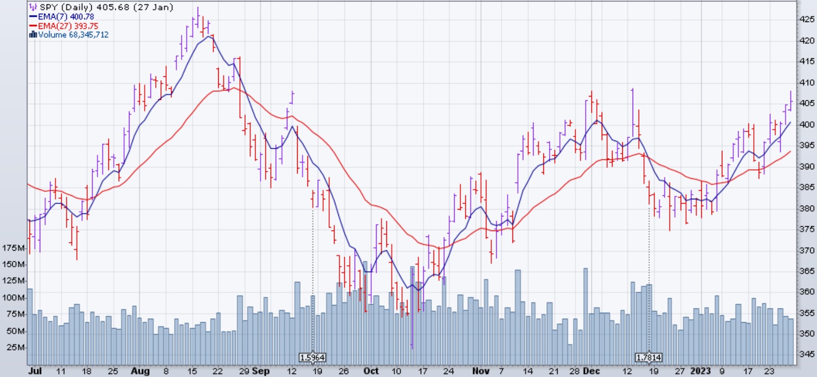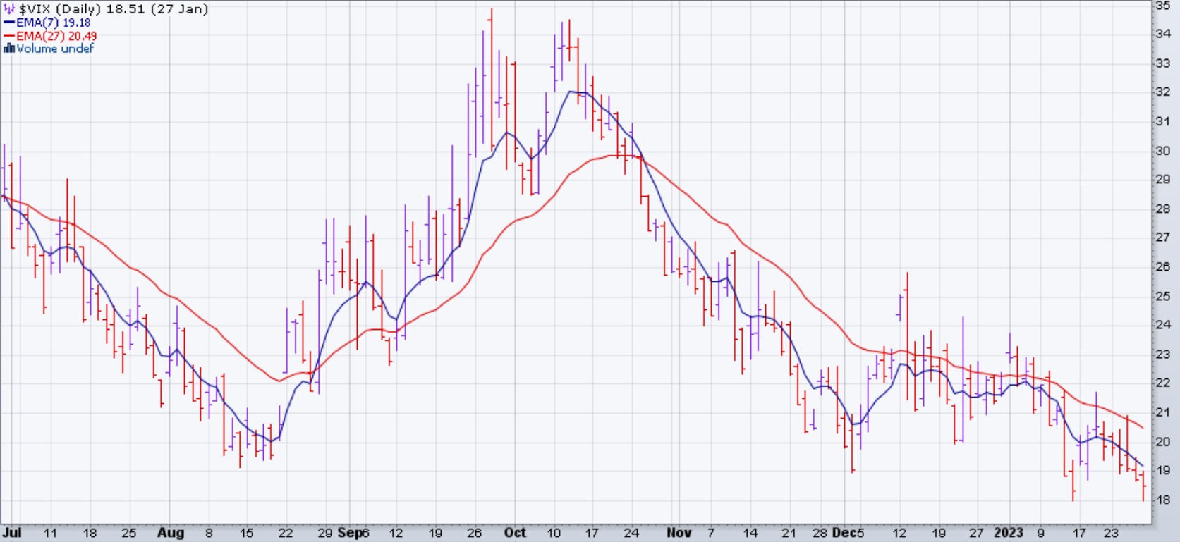 Le marché (SPX et dérivés) est monté de 2.5% la semaine du 23 janvier 2023. La hausse de cette semaine est survenue alors que les données montraient que l'économie américaine avait augmenté plus que prévu au quatrième trimestre, bien que le rythme de la croissance économique ait été plus lent qu'au troisième trimestre. Le produit intérieur brut réel au cours du trimestre clos en décembre a augmenté à un rythme annualisé de 2,9 %, selon le Bureau of Economic Analysis, dépassant l'estimation consensuelle selon Econoday d'une hausse de 2,7 %. Au troisième trimestre, le PIB réel a progressé de 3,2 %. Malgré le ralentissement séquentiel, le rapport meilleur que prévu a contribué à apaiser les craintes de récession des investisseurs.