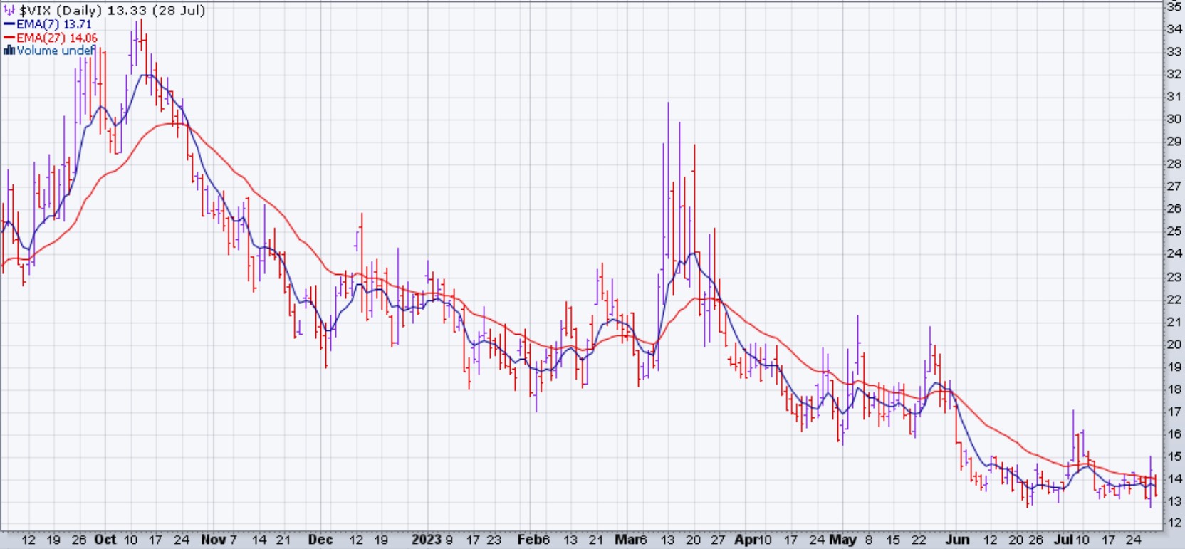 Le VIX a conclu sa semaine au même niveau que la semaine derinière. Par contre, ses EMA se sont rapprochées.