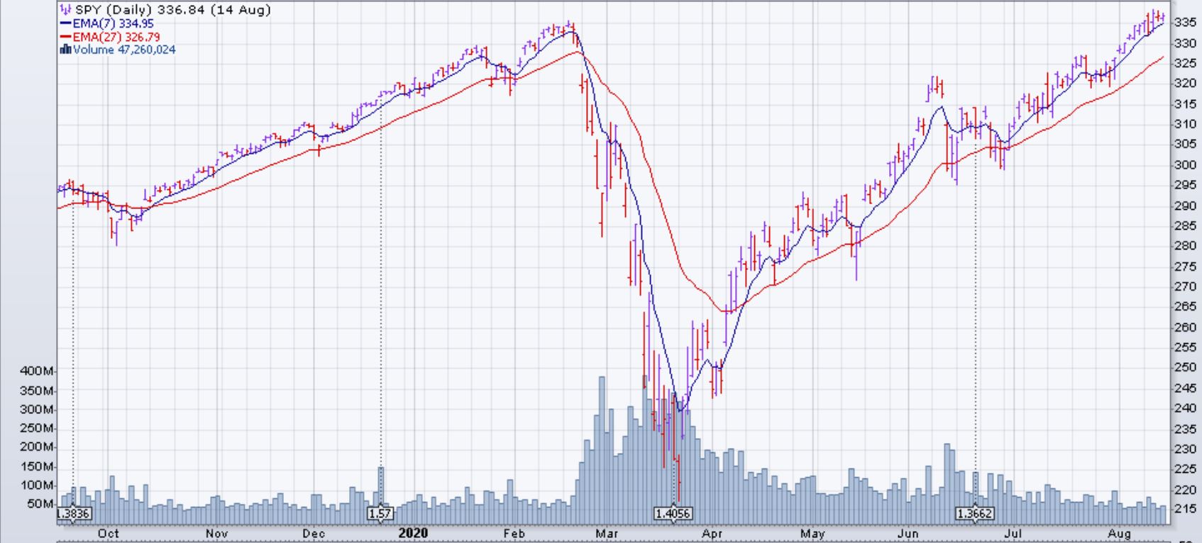 The S&P 500 index (SPY and derivatives) rose by 0.6% the week of August 10th 2020. Weekly jobless claims reached a new five-month low and even lower than what was predicted. This kept the market up despite the lack of progress between the democrats and republicans over the pandemic relief. The best performing sectors this week were the Industrial and Energy Sectors.