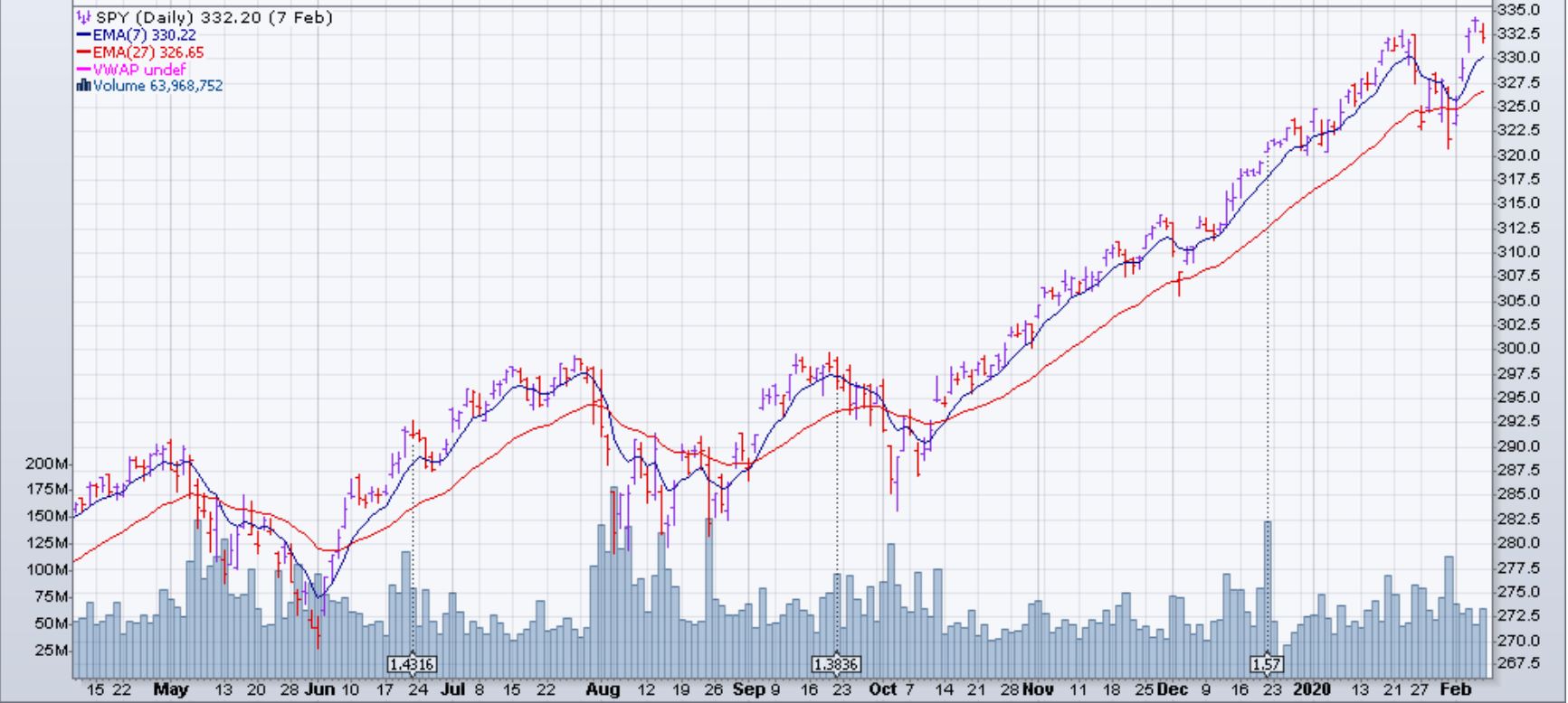 - Opened 7 Long Calls SPY 2020/02/07 335 @ 0.09$ on the 31st of January 2020