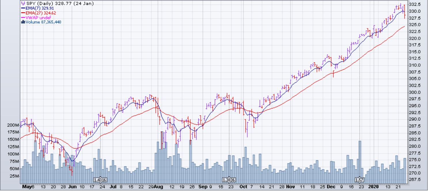 - Sold the 7 Puts SPY 2020/01/24 325 @ 0.03$ on the 23rd of January