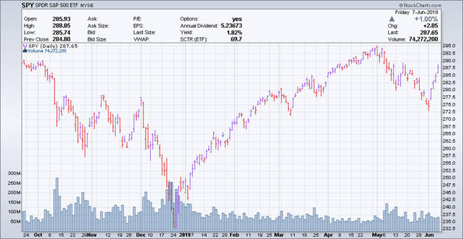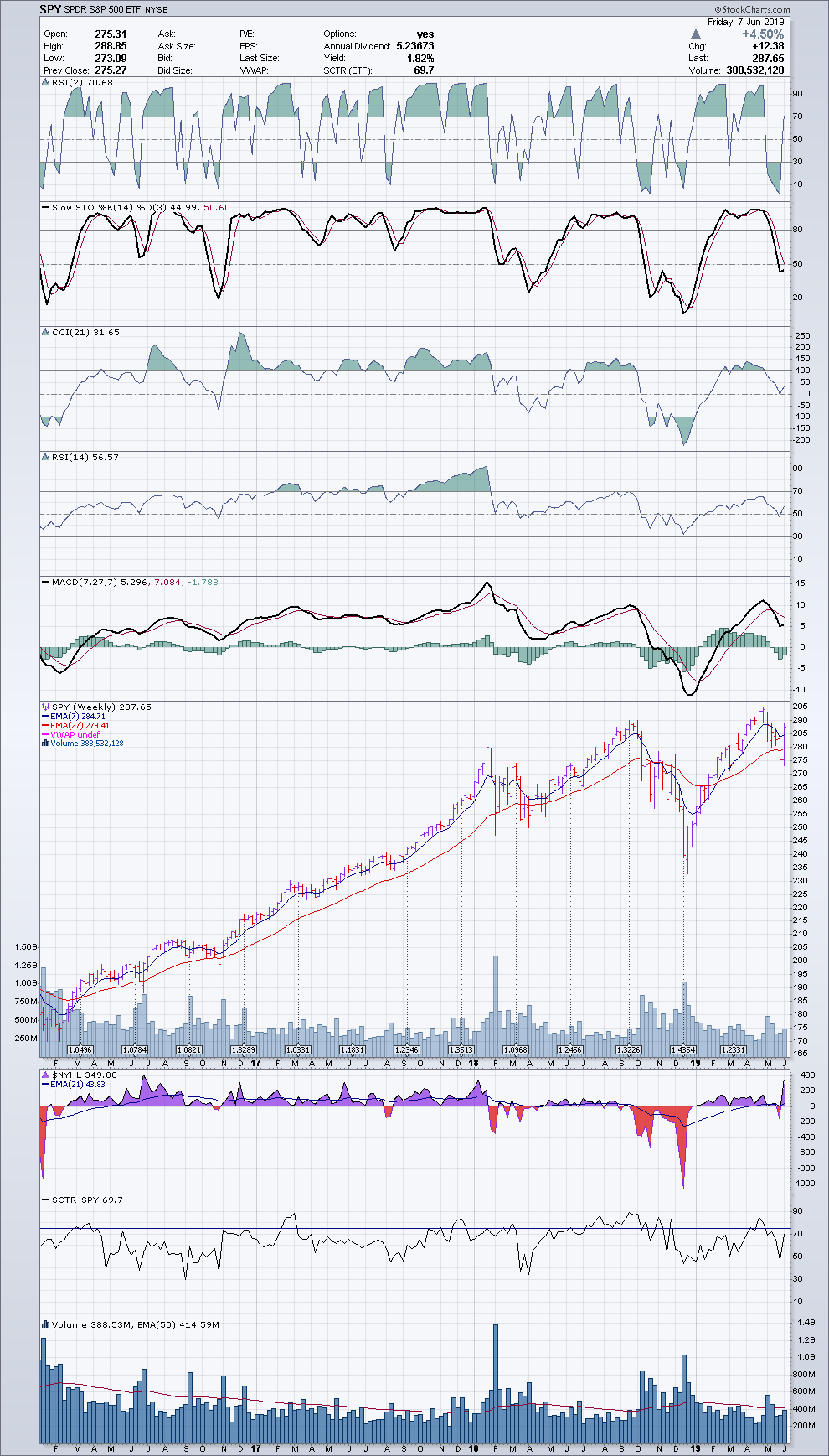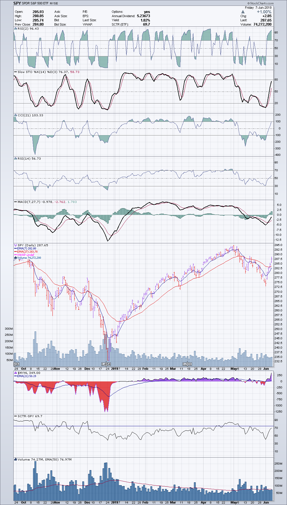 The market (S&P500 Index with its FNB SPY and its derivatives) ended the week with a gain of 4.4% at 2,873.34 points compared to the previous Friday at 2,752.06 points. In May the market was down 6.6% due to the negotiations (or, apparently, the lack of them) between China and the U.S. for a new commercial treaty between the two Countries. The gain of the last week was due the rally in the materials and technology sectors. The unemployment statistics for May revealed on Friday a decrease in the creation of new jobs compared to the number forecasted (the unemployment in the U.S. is 3.6%). This negative news, plus a comment from the Federal Reserve, has started the possibility of a decrease in interest rates.