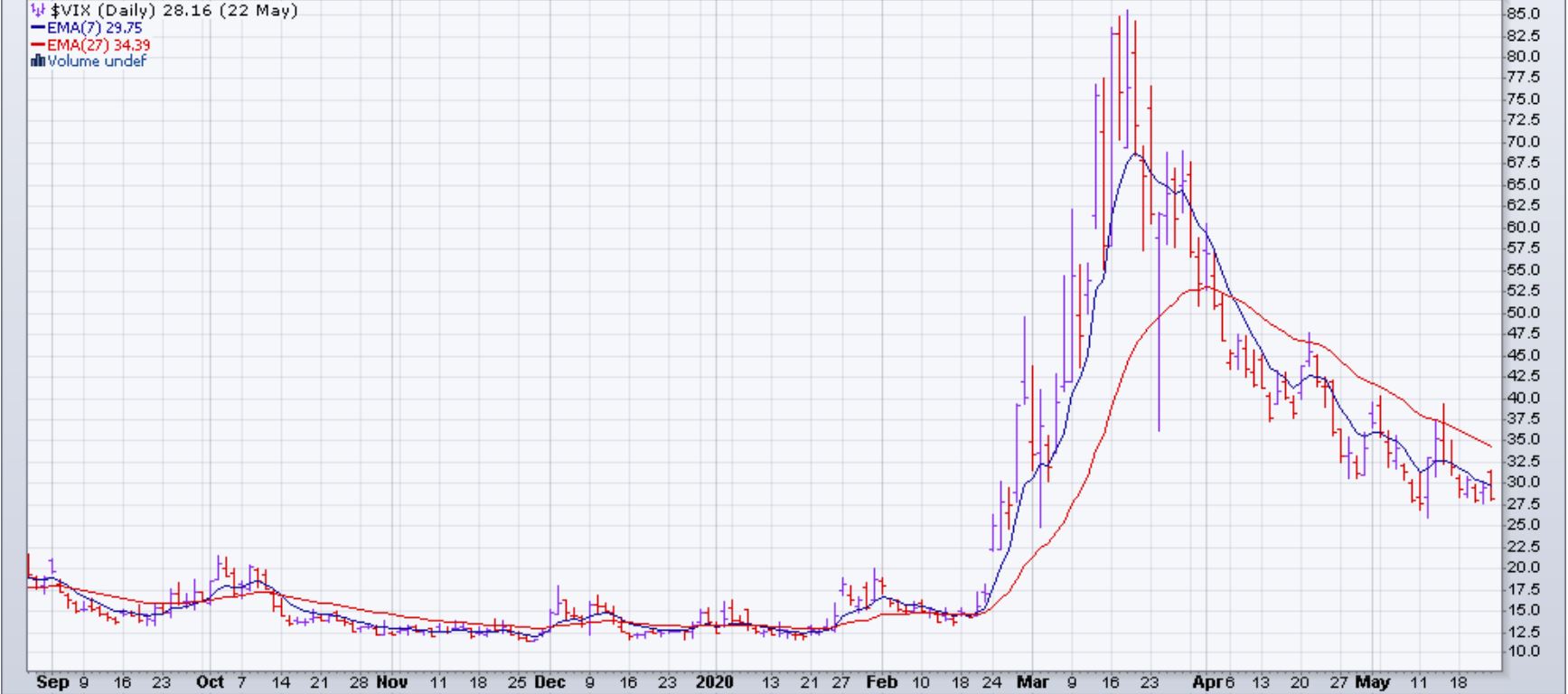 Since the extremely high levels of volatility in the market caused by the Covid-19 pandemic, the margin requirements for ES futures contracts have almost tripled. The week of May 18th we constructed an option strategy on the ES that is profitable if the market slightly rises, slightly falls or stays at the same level. We also bought long-term MES contracts for our clients.