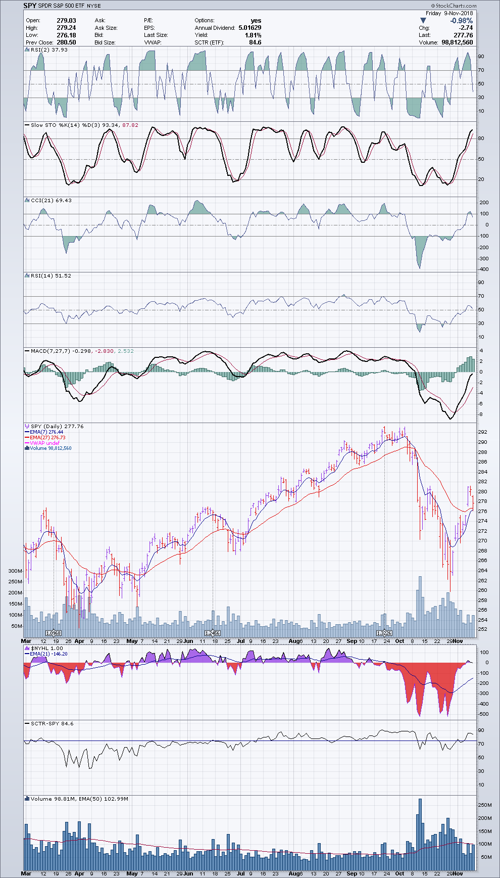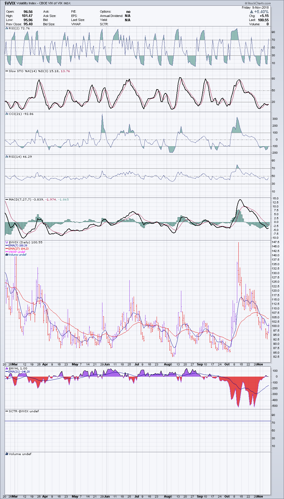 The SPY sailed the forty-sixth week of 2018 with sustained tailwinds and headwinds that ended the week with a gain of six points and decreased the VIX at 17.50%. The VIX is still uncomfortable but it shows a trend towards more positive levels, as the VVIX also indicates a lower volatility of VIX. Despite this we believe it is better do nothing and wait until the VIX be lower.