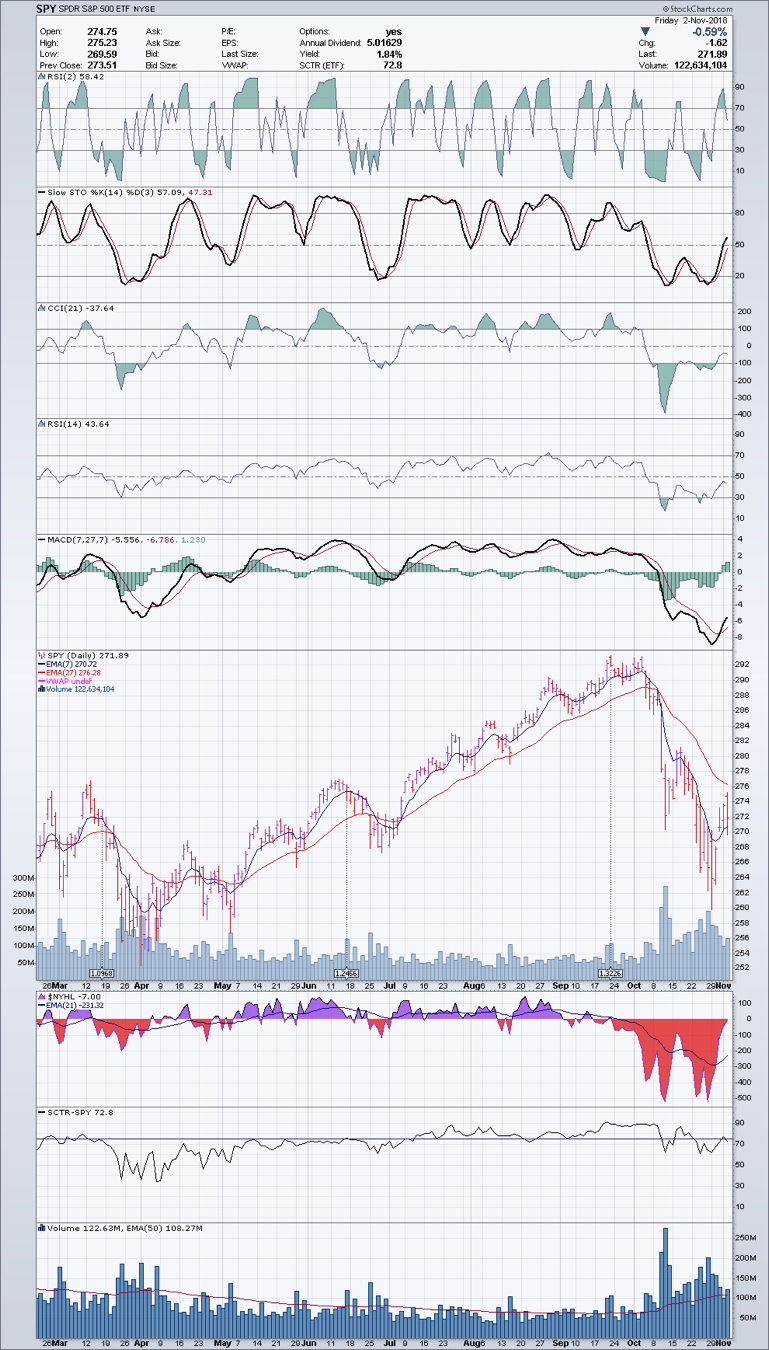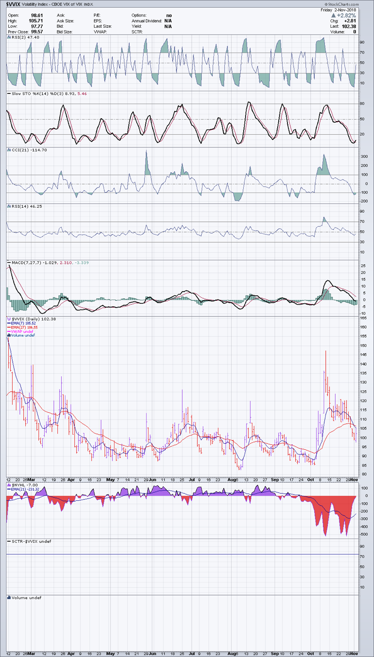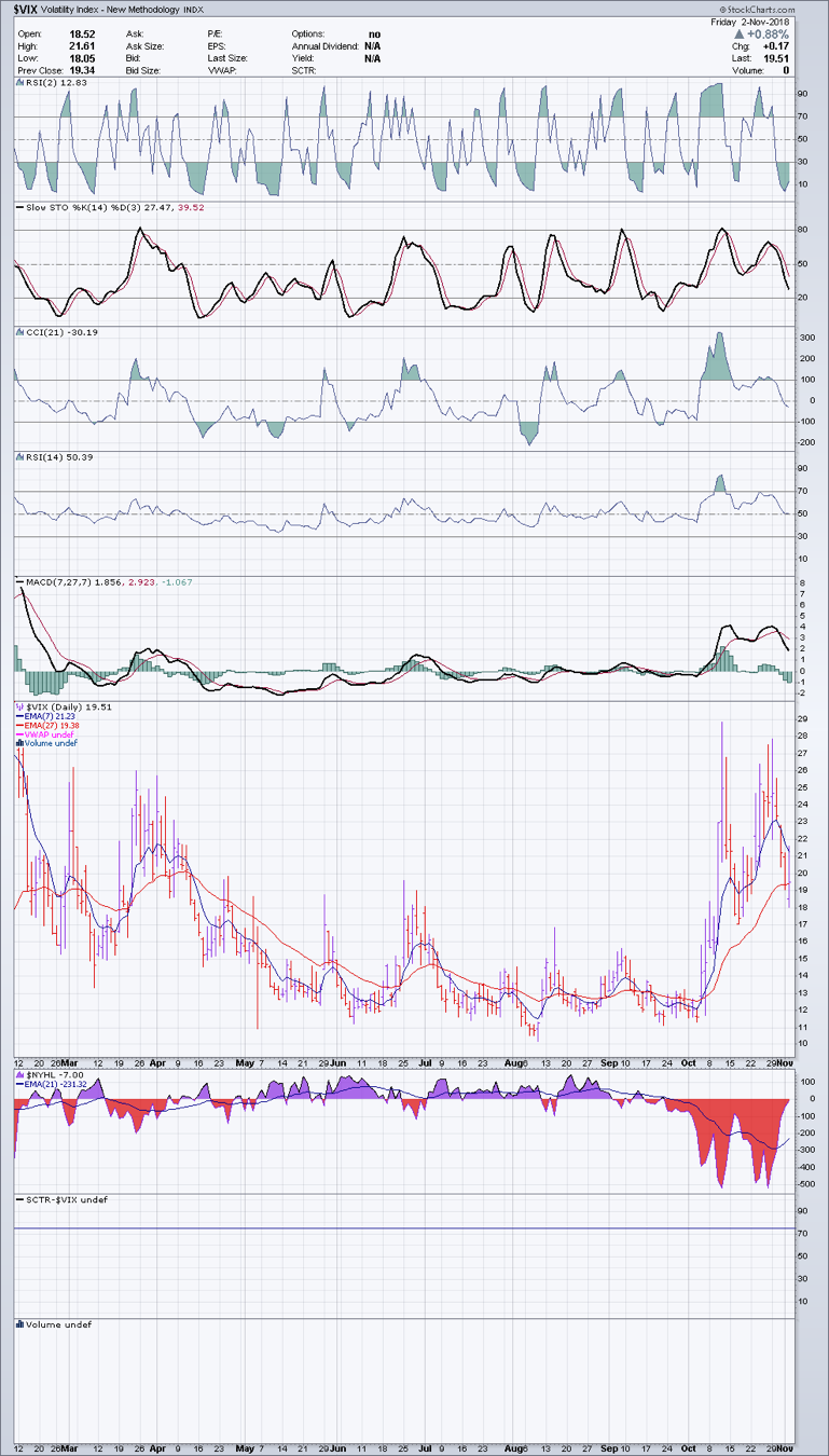 The SPY sailed the forty-fifth week of 2018 with sustained tailwinds that ended the week with a gain of eight points and decreased the VIX at 19%. The VIX is still uncomfortable but it shows a trend towards more positive levels, as the VVIX also indicates a lower volatility of VIX. Despite this We believe it is better do nothing and wait until the elections of Tuesday in the US.