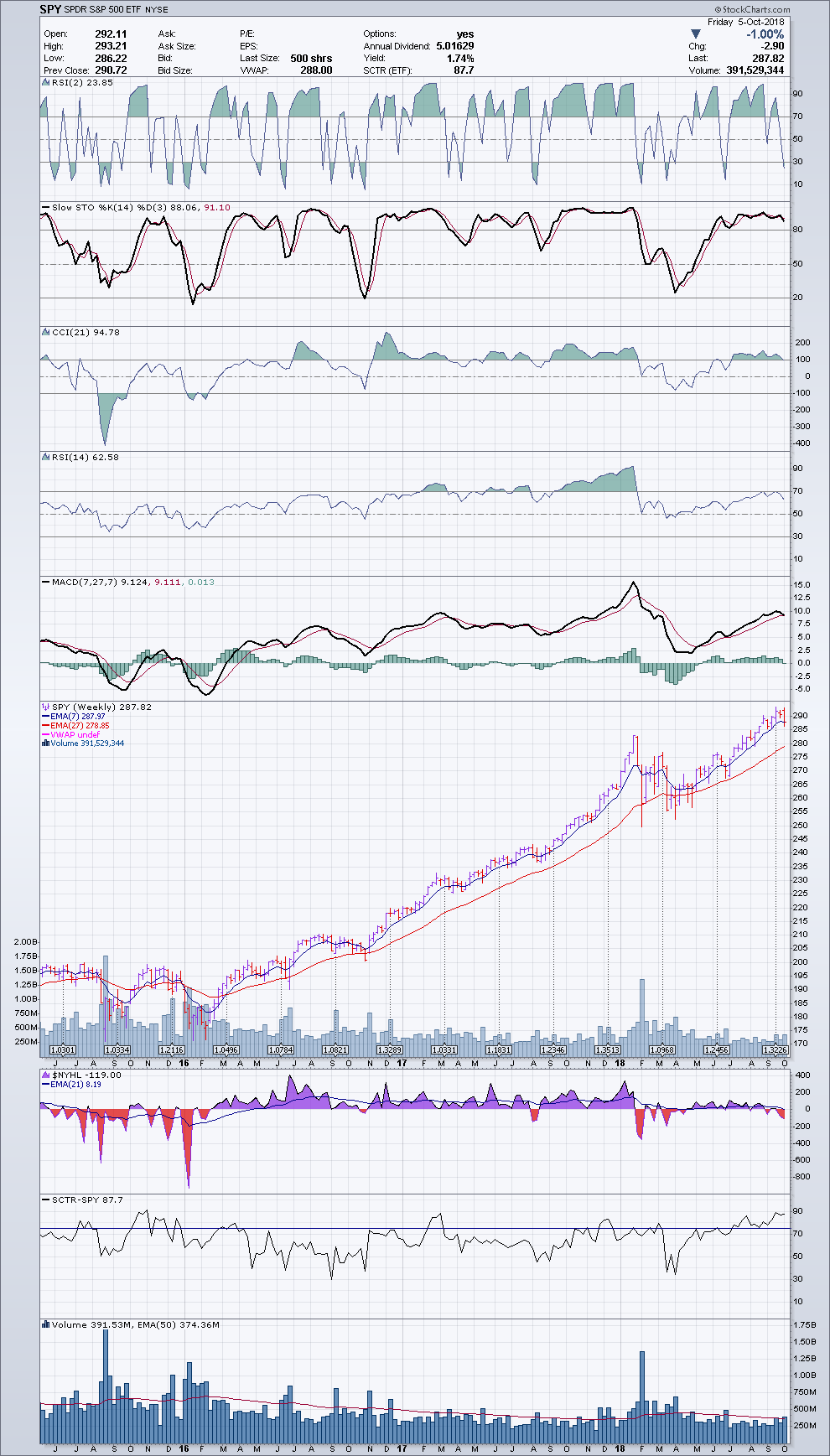 But the long-term chart is showing a comfortable bullishness (see chart 2 - SPY - weekly).
