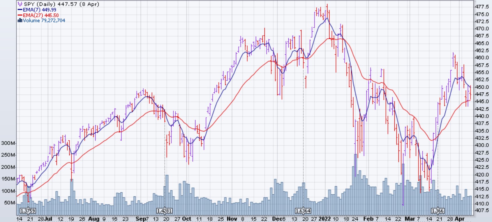 Le marché (SPX et dérivés) a baissé de 1.3% la semaine du 4 avril 2022. Le procès-verbal de la réunion du comité de mars de la Réserve Fédérale a montré que les responsables envisageaient d'augmenter les taux d'un demi-point avant de finalement décider d'une augmentation d'un quart de point. Ceux-ci ont été perçus par les investisseurs comme des signes que le plan de resserrement de la Fed pourrait se révéler plus agressif que prévu.