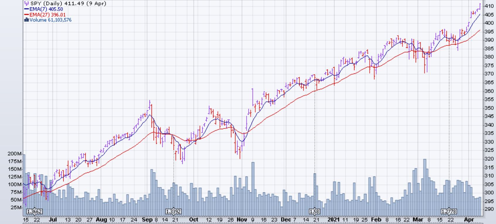 Le marché (SPX et dérivés) est monté de 2.7% la semaine du 5 avril 2021.
