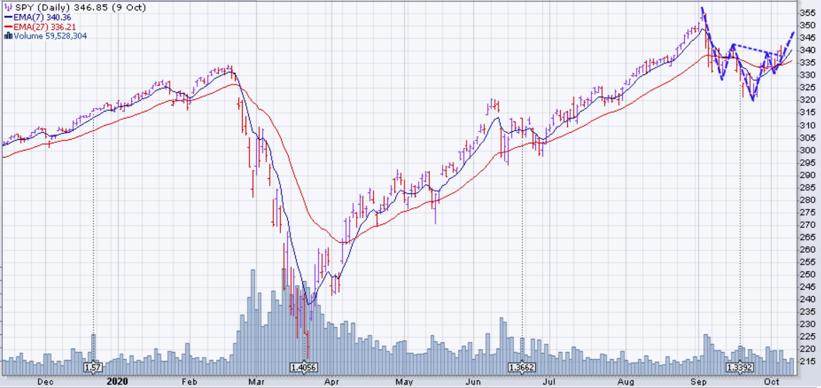 Le marché (SPX et dérivés) est monté de 3.8% la semaine du 5 octobre 2020. Les investisseurs sont plus optimistes qu'avant pour un deuxième accord de soutien accordé à l'économie US. Tous les secteurs du S&P étaient à la hausse cette semaine. On anticipait aussi des bons résultats du troisième trimestre terminé en septembre. Le secteur des matériaux et celle de l'énergie ont eu la meilleure performance avec des hausses de plus de 5% chacun.