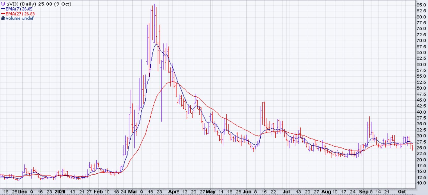 Le SPY a complété sa configuration de tête & épaule à la hausse lorsque le prix a traversé 340 points. Les EMA se sont croisées à la hausse et donc la tendance du marché est devenue haussière. Le VIX a finalement cassé à la baisse son niveau de support après plus d'un mois. Il a terminé la semaine à 25% avec ses EMA croissées à la baisse: ce qui annonce une baisse de volatilité dans le marché. Cependant, à 25% le VIX est encore élevé et donc le marché continue à être plus difficile à prévoir.