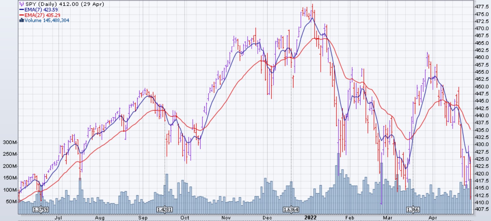 Le marché (SPX et dérivés) a baissé de 3.3% la semaine du 25 avril 2022. Le S&P 500 a terminé une quatrième semaine consécutive dans le rouge après que les perspectives décevantes d'Amazon (AMZN) aient pesé sur le le marché. Les investisseurs attendent la décision de M. Powell de la Réserve Fédérale sur l'augmentation des taux d'intérêts qui sera devoilé mercredi le 4 mai.