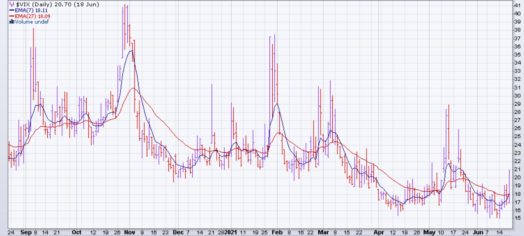 Les EMA du VIX se sont croissez à la hausse ce qui annonce une augmentation de la volatilité du marché.