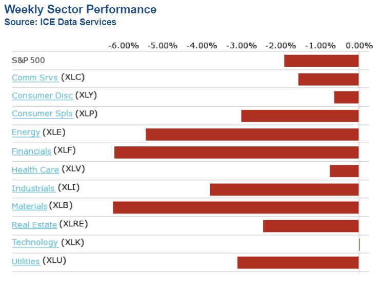 Le marché (SPX et dérivés) est descendu de 1.9% la semaine du 14 juin 2021. Les craintes des investisseurs viennent d'une éventuelle hausse des taux d'intérêt de la Réserve fédérale pour combattre l'inflation actuelle. Tous les secteurs du S&P 500 ont eu une performance négative. Le secteur de la finance et celle de l'énergie ont eu les pires performances avec des pertes d'environ 6%.