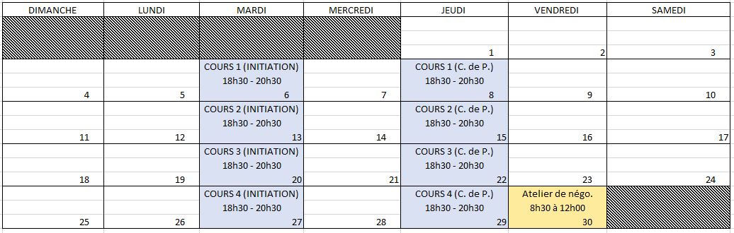Prochains cours sur le calendrier: