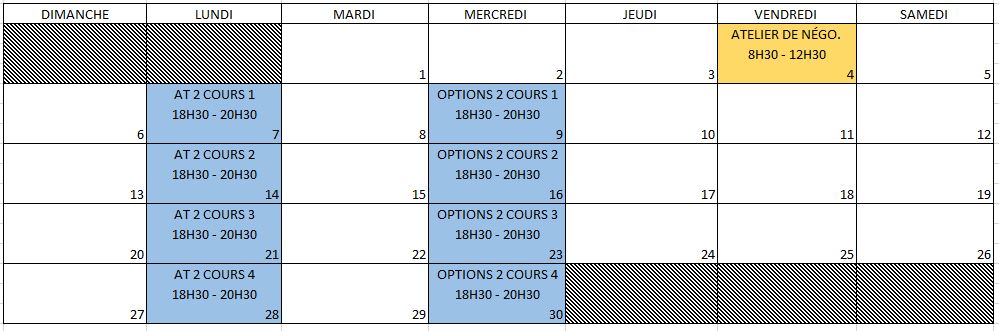 Prochains cours sur le calendrier: