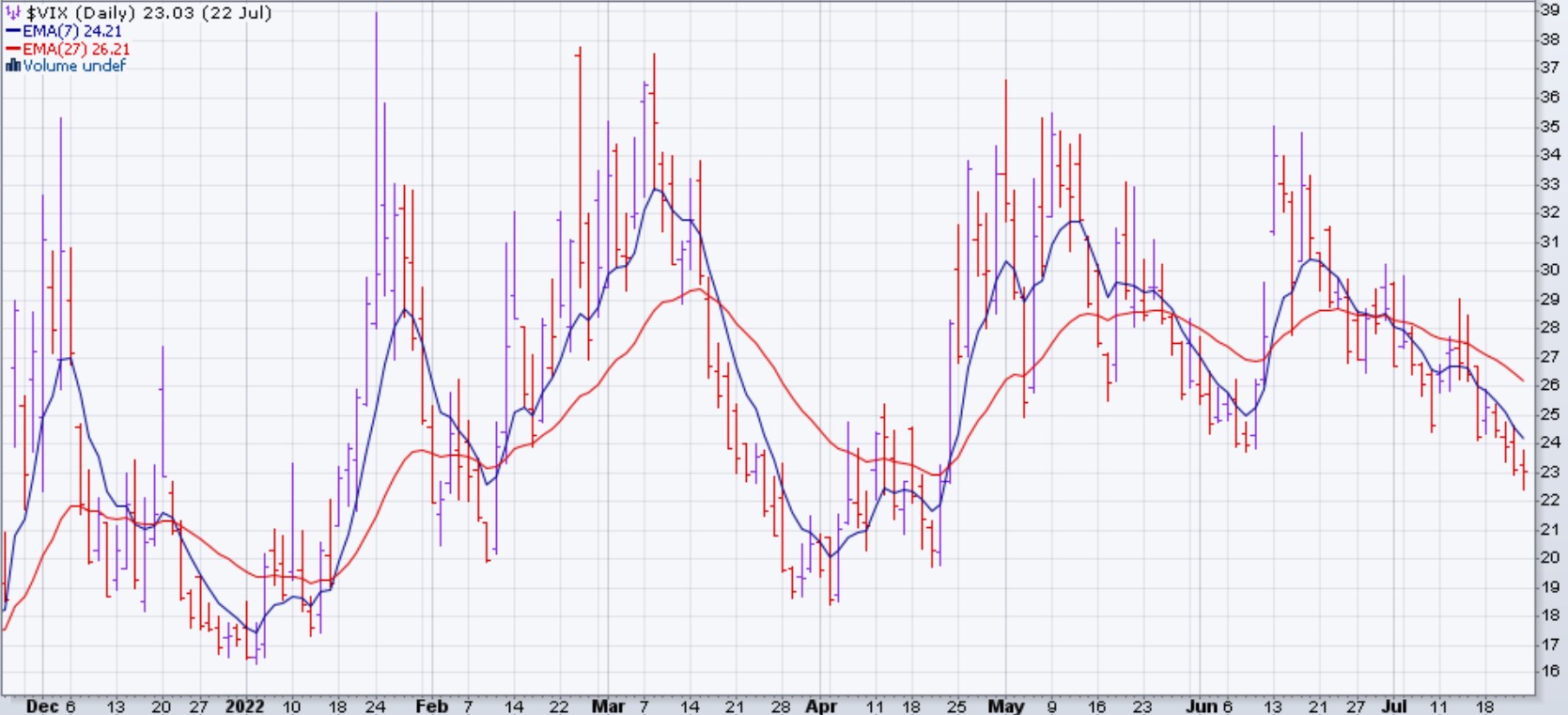 Le VIX a conclu sa semaine à 23%: le niveau le plus bas depuis le mois d'avril 2022. Il est évident qu'il est toujours à des niveaux inquiétants, mais graphiquement parlant, il montre une sympathie pour la baisse. S'il est capable d'aller et rester plus bas que 20% la négociation à court-terme devient plus efficient.