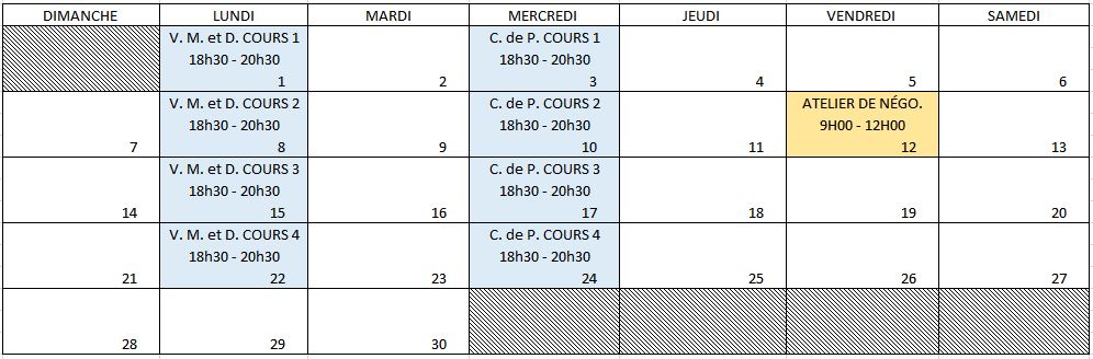 Cours 1 - le lundi 1er novembre 18 h 30 - 20 h 30