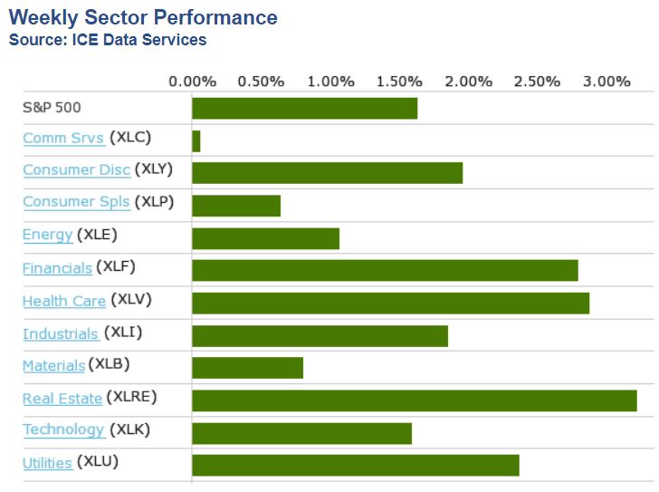 Le marché (SPX et dérivés) est monté de 1.6% la semaine du 18 octobre 2021. Voici les résultats de chaque secteur du S&P 500: