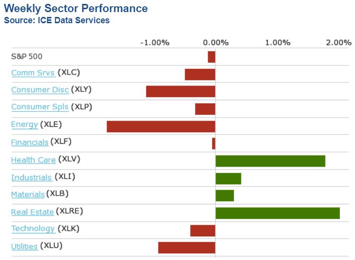 Le marché (SPX et dérivés) est descendu de 0.1% la semaine du 19 avril 2021. Ceci est la première semaine que le marché a eu un rendement négatif depuis un mois. L'effet négatif de M. Biden concernant l'augmentation des taxes sur les gains en capital a été annulé par les résultats positifs des benefices pour le premier trimestre. Le secteur de l'immobilier et celui de santé ont eu la meilleur performance cette semaine avec des montées de presque 2%. La pire performance était dans le secteur de l'énergie avec une perte d'environ 2%.