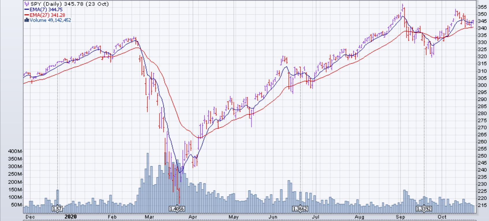 Le marché (SPX et dérivés) est descendu de 0.5% la semaine du 19 octobre 2020. L'incertitude causée par l'augmentation des cas de Covid-19 à travers le monde affecte négativement le marché. En plus, les élections américainnes et les discussions sans issue entre les démocrates et les républicains sur le plan de continuité de financement économique causent de l'incertitude parmi les investisseurs.