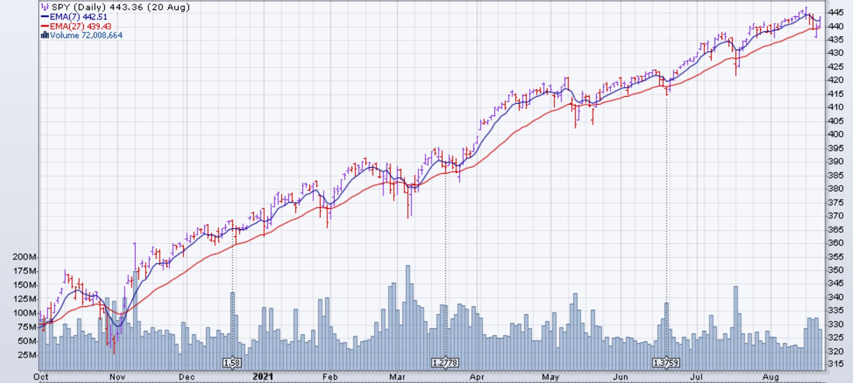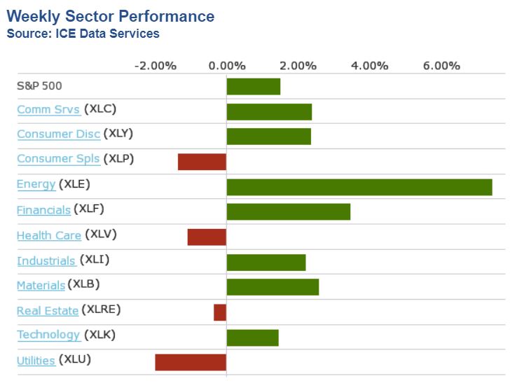 Le marché (SPX et dérivés) est monté de 1.5% la semaine du 23 août 2021. Voici les résultats de chaque secteur du S&P 500:
