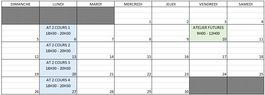 Prochain cours sur le calendrier: