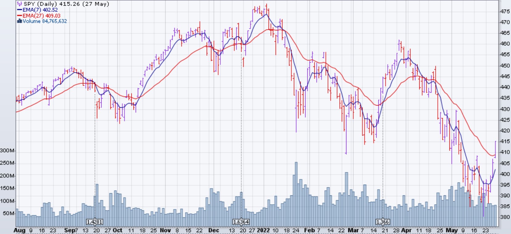 Le marché (SPX et dérivés) est monté de 6.6% la semaine du 23 mai 2022. Pour la première fois depuis huit semaines le marché a eu une semaine positive.