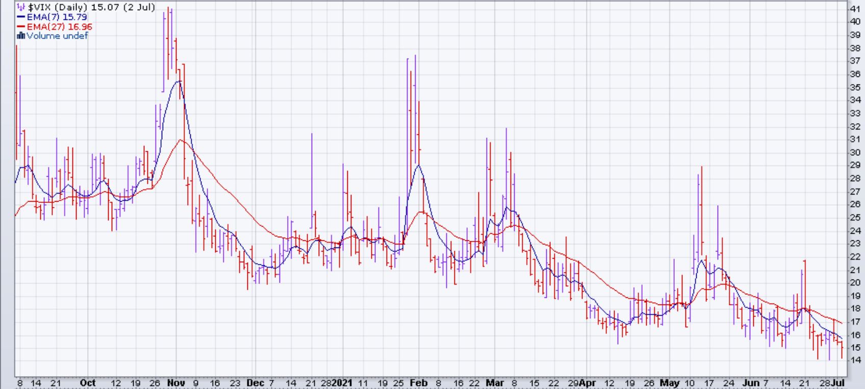Le VIX accumule à environ 15 points et a eu la semaine la moins volatile depuis la pandémie.