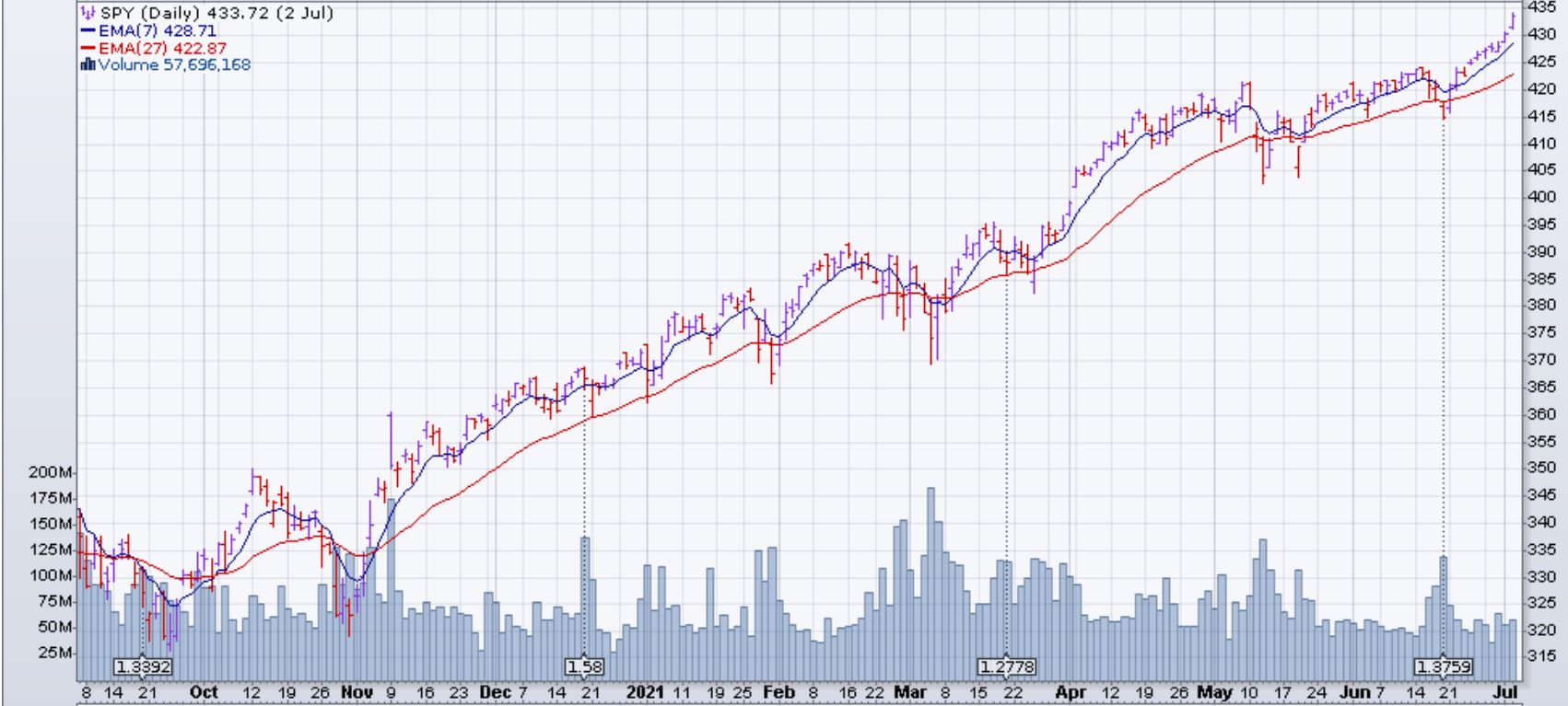 Le SPY a fait un nouveau haut historique. Cependant, le volume n'accompagne pas la hausse.