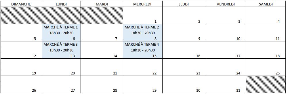 Prochains cours sur le calendrier: