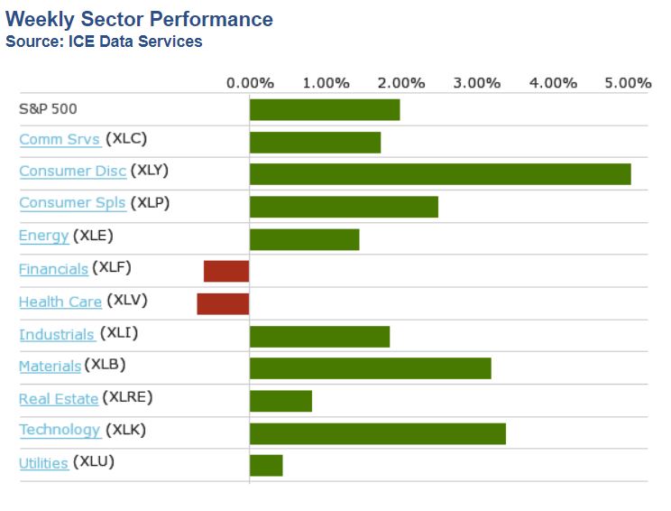 Le marché (SPX et dérivés) est monté de 2% la semaine du 1er novembre 2021. Voici les résultats de chaque secteur du S&P 500: