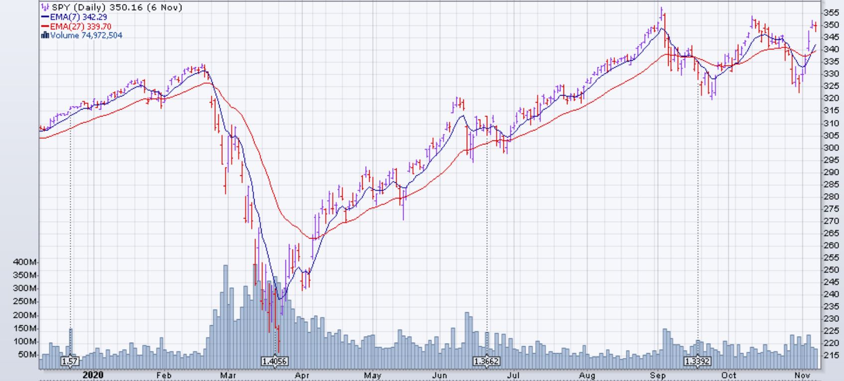 Le marché (SPX et dérivés) est monté de 7.3% la semaine du 2 novembre. Les résultats des élections américaines ont conclu qu'aucun des deux contendants n’aura le pouvoir de gros changement avec un sénat divisé et donc une bonne nouvelle pour le marché pour les prochains quatre années. Tous les secteurs du S&P 500 ont été à la hausse cette semaine. Le secteur de la technologie a eu la meilleure performance avec une montée de presque 10%.