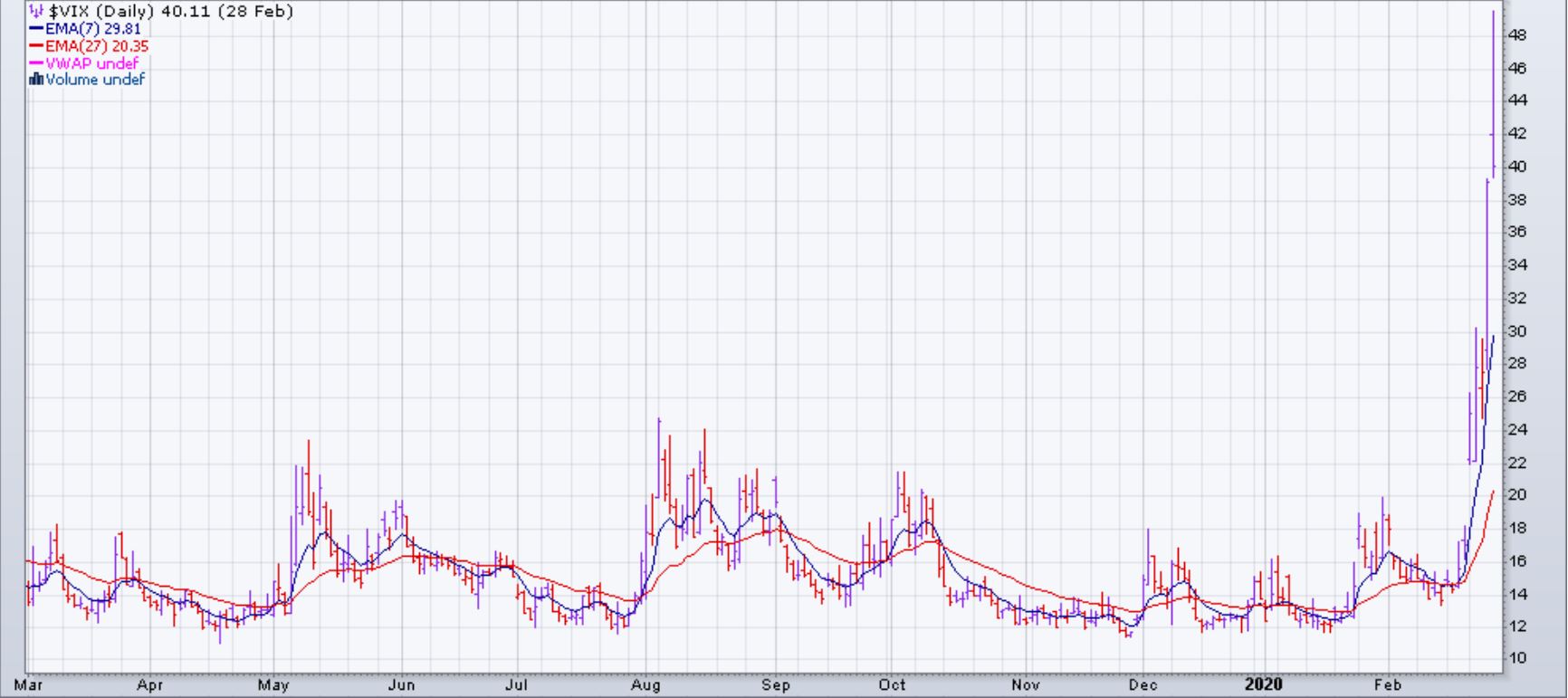 Le VIX a terminé la semaine à 40.11%. Le marché est donc trop volatile pour liquider ou ajouter des positions. Le marché est trop émotif en ce moment et avec un VIX à 40%, les indicateurs techniques du marché ne sont pas fiables.