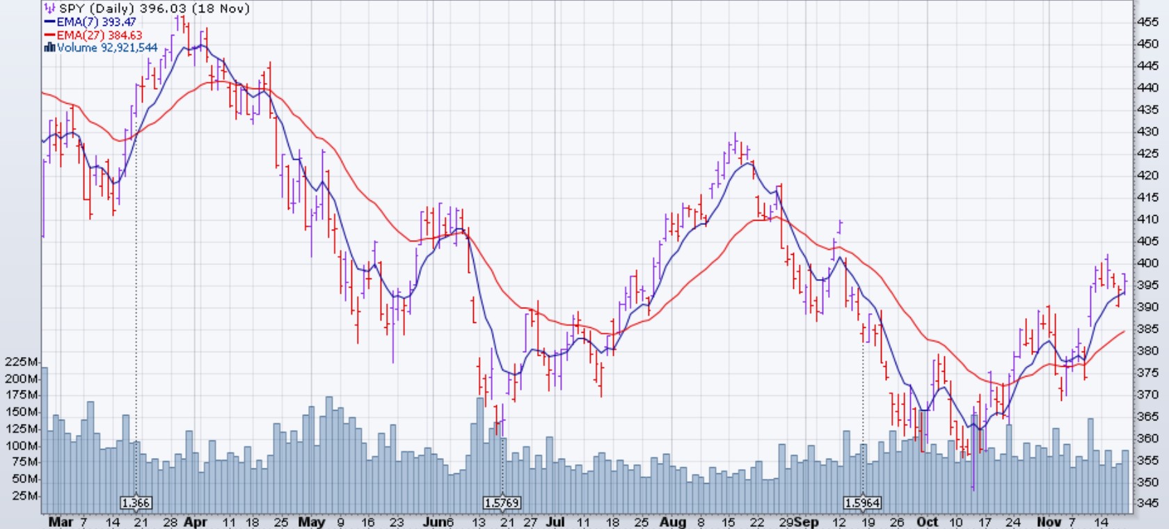 Le marché (SPX et dérivés) est descendu de 0.7% la semaine du 14 novembre 2022. La baisse n'a effacé qu'une partie de la montée de 5,9 % de la semaine dernière. Le S&P 500 est toujours en hausse de 2,4 % pour le mois de novembre. La baisse hebdomadaire est survenue alors que certaines sociétés de vente au détail, dont Target (TGT), ont annoncé des bénéfices trimestriels inférieurs aux attentes des analystes et ont abaissé leurs prévisions. La baisse de la semaine reflète également une réduction de l'excitation suscitée par une inflation plus lente que prévu qui a alimenté le rallye de la semaine dernière.