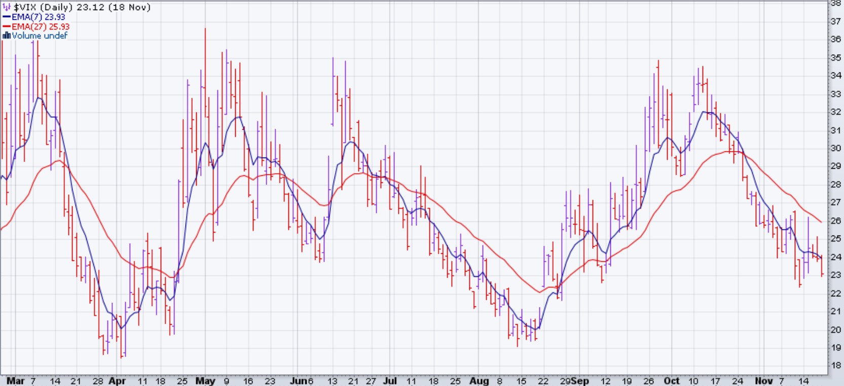 Le VIX a conclu la semaine à 23% et ses EMA sont toujours croisées à la baisse.