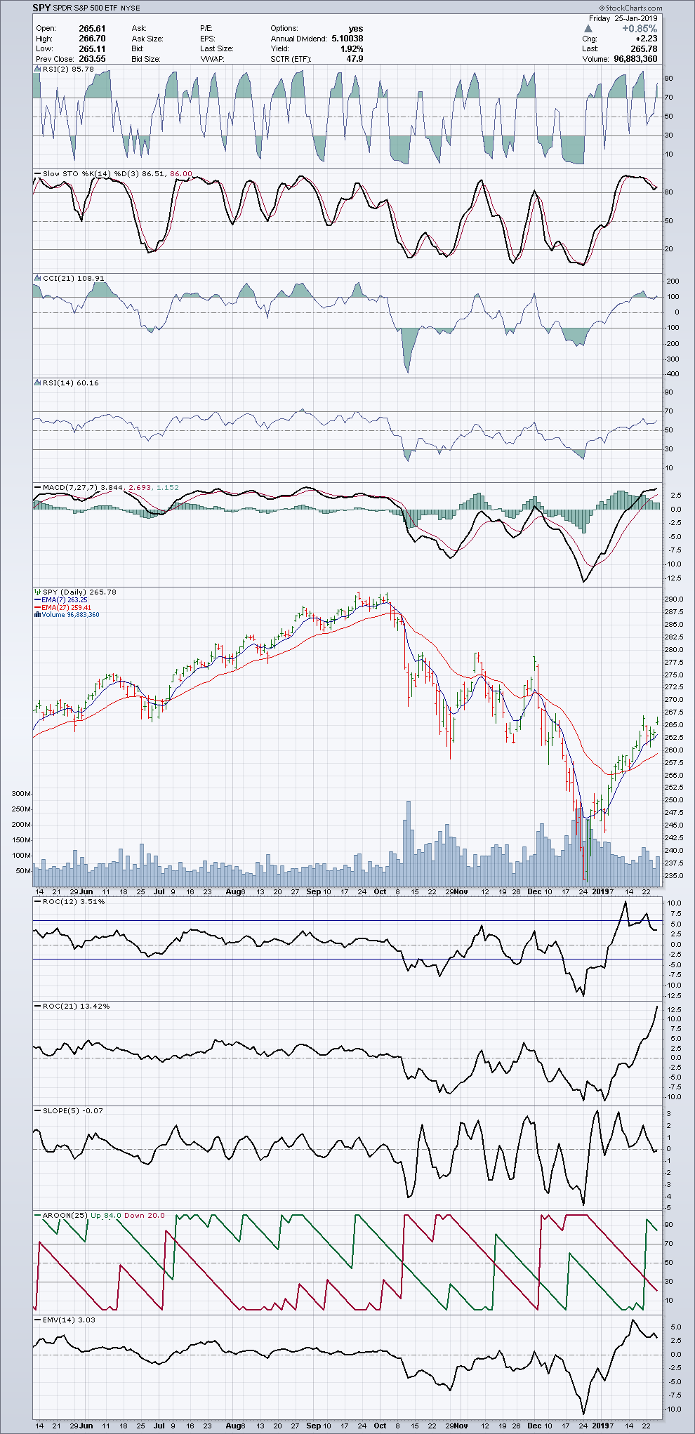 Le SPY a navigué la quatrième semaine de 2019 avec de faibles vents qui ont conclu la semaine avec une baisse de 0.2%, ou 6.3% de hausse depuis le début de 2019. Le VIX a baissé légèrement à 17.42% depuis la semaine précédente: un niveau qui rend la présence des signaux d’analyse technique mieux utilisables parce qu’inférieur à 20% mais non encore idéal. Le meilleur environnement pour le VIX est près de 10%. Notre approche est de retourner dans le marché progressivement, parce que nous croyons que le marché a une propension, mais encore fragile, vers la hausse. Les graphiques 3 et 4 montrent un VIX et un VVIX qui soulignent pour la semaine un niveau plus confortablement atténué de turbulence des marchés US par rapport à la semaine précédente.