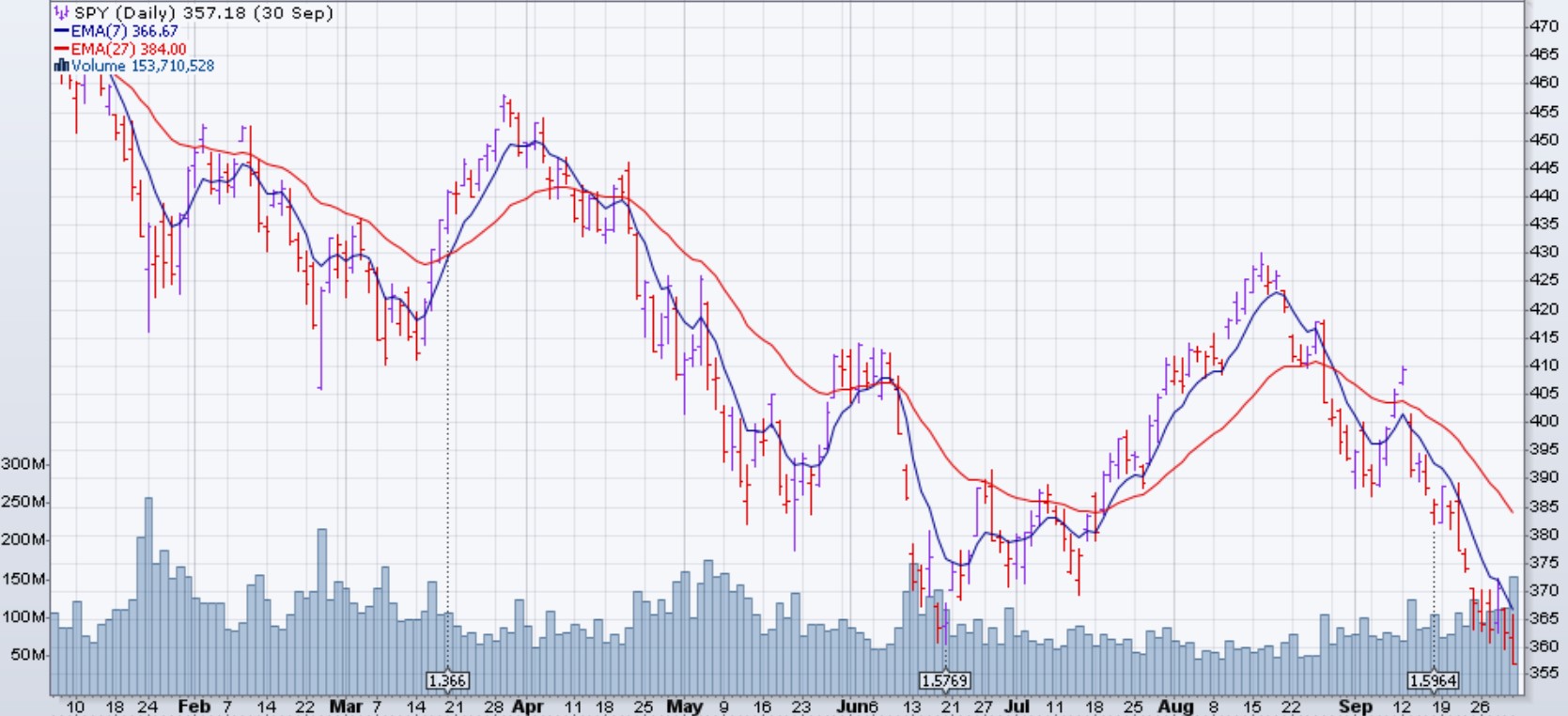 Le SPY a conclu sa semaine à 357$: le niveau le plus bas de l'année 2022. Cependant, plusieurs indicateurs techniques montrent une faiblesse dans sa baisse.
